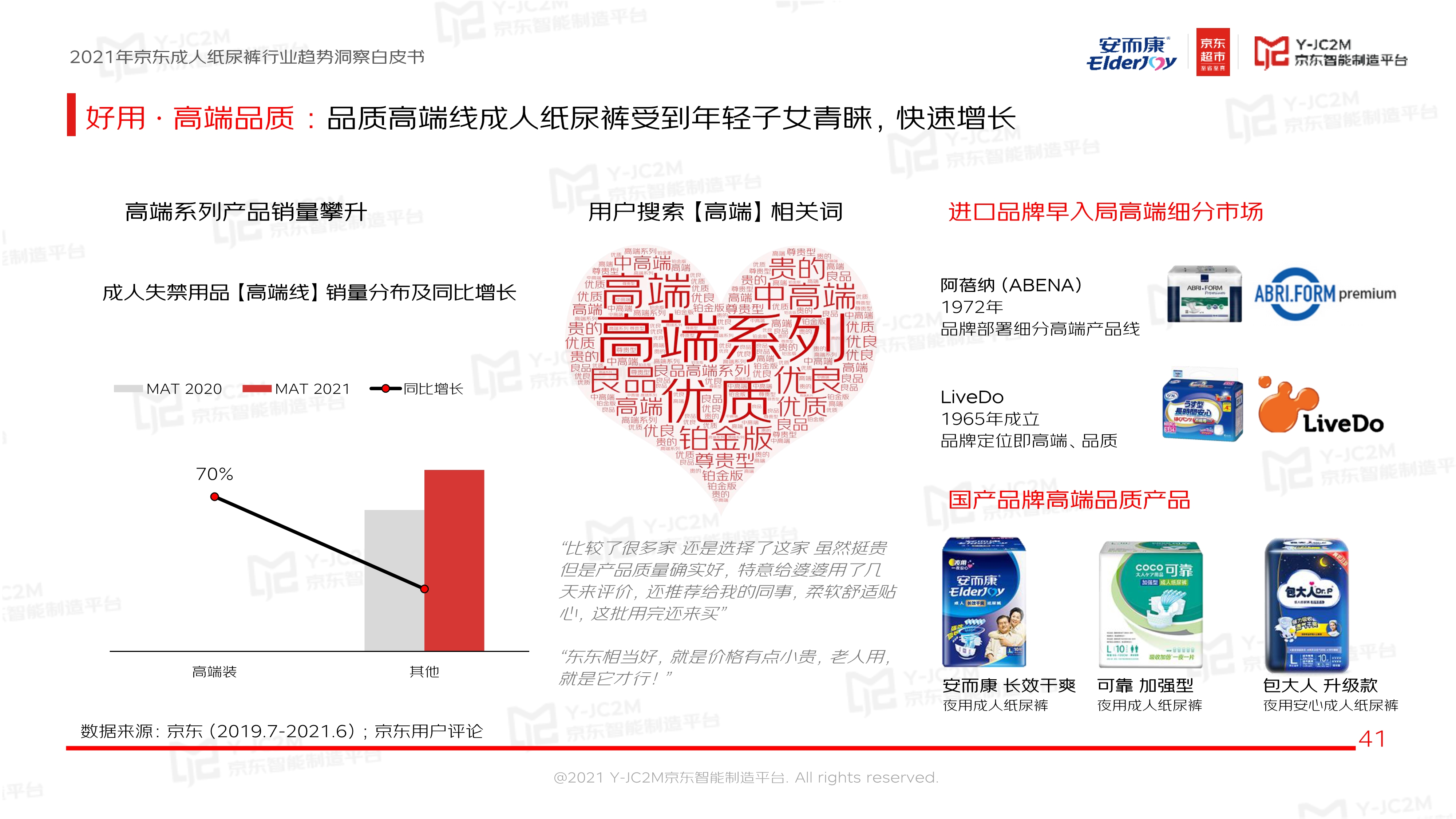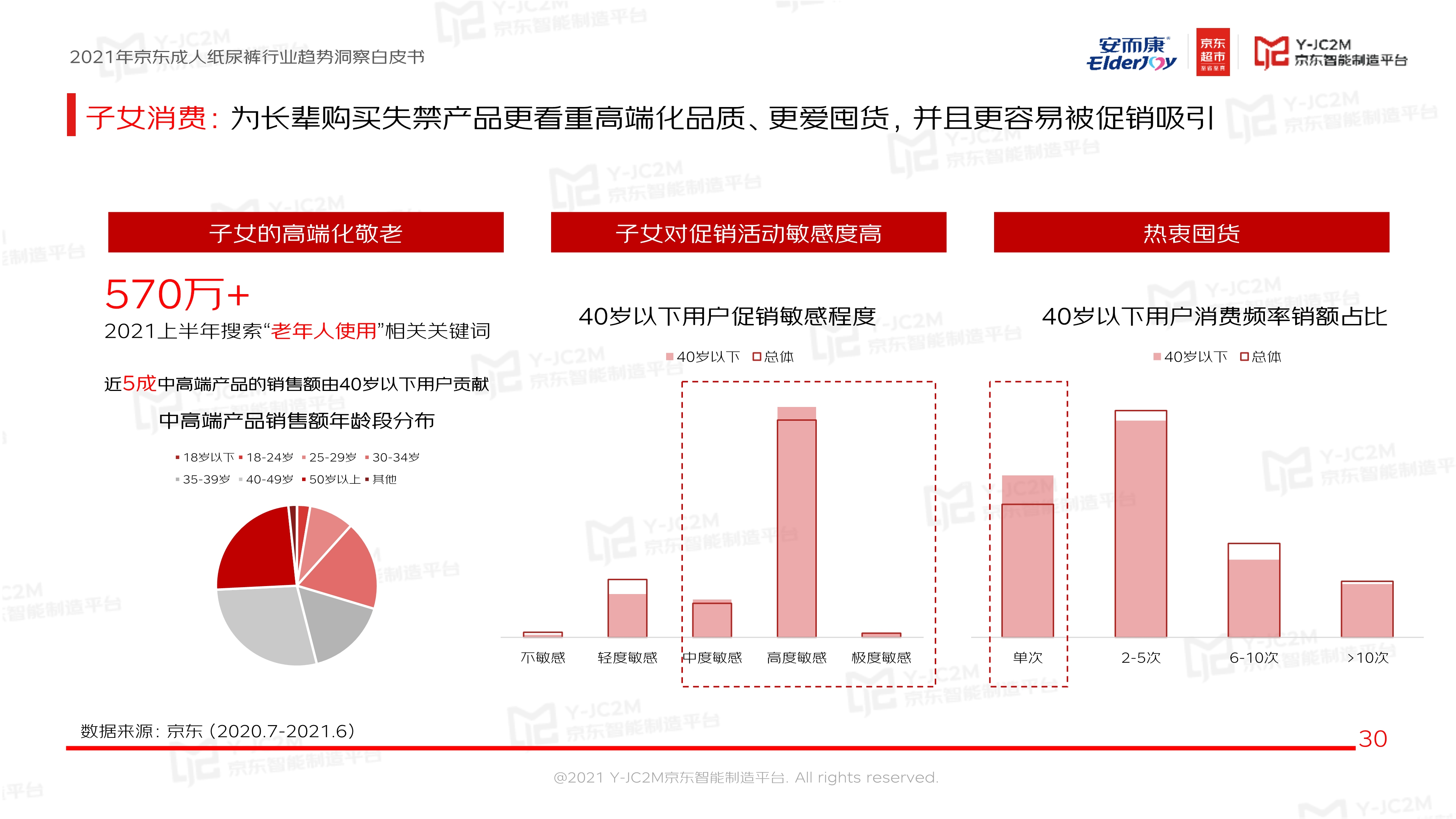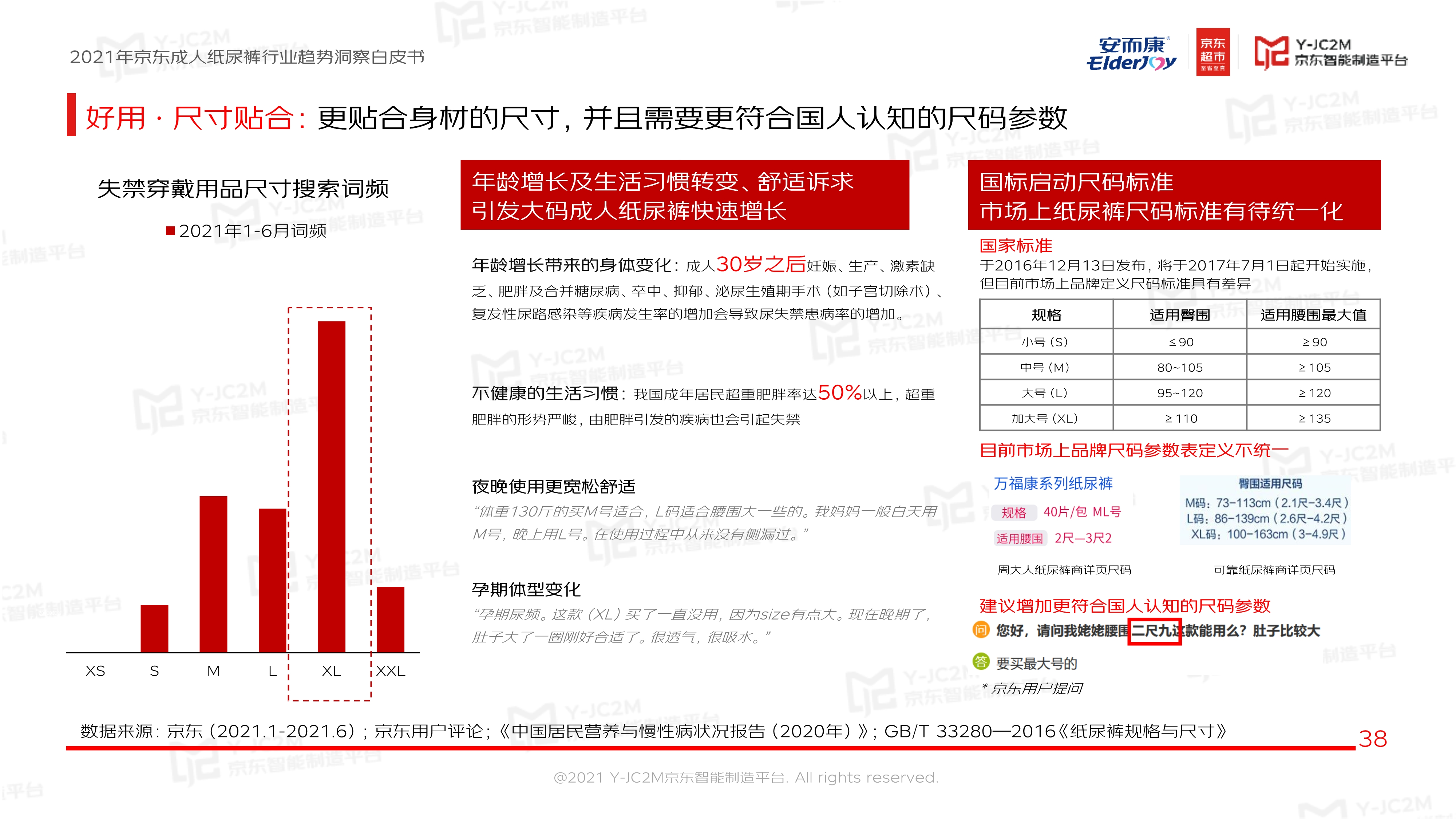 时: 2023-01-07近日,大发VII旗下成人纸尿裤品牌安而康联合京东智能制造平台共同发布《2021年京东成人纸尿裤行业趋势洞察白皮书》(下称《白皮书》),从行业概况、品牌格局、用户洞察、趋势展望四个维度,结合销量数据与消费者,深入剖析了随着我国步入老龄化社会以及消费观念不断升级,国内纸尿裤市场的全新变化与发展趋势。